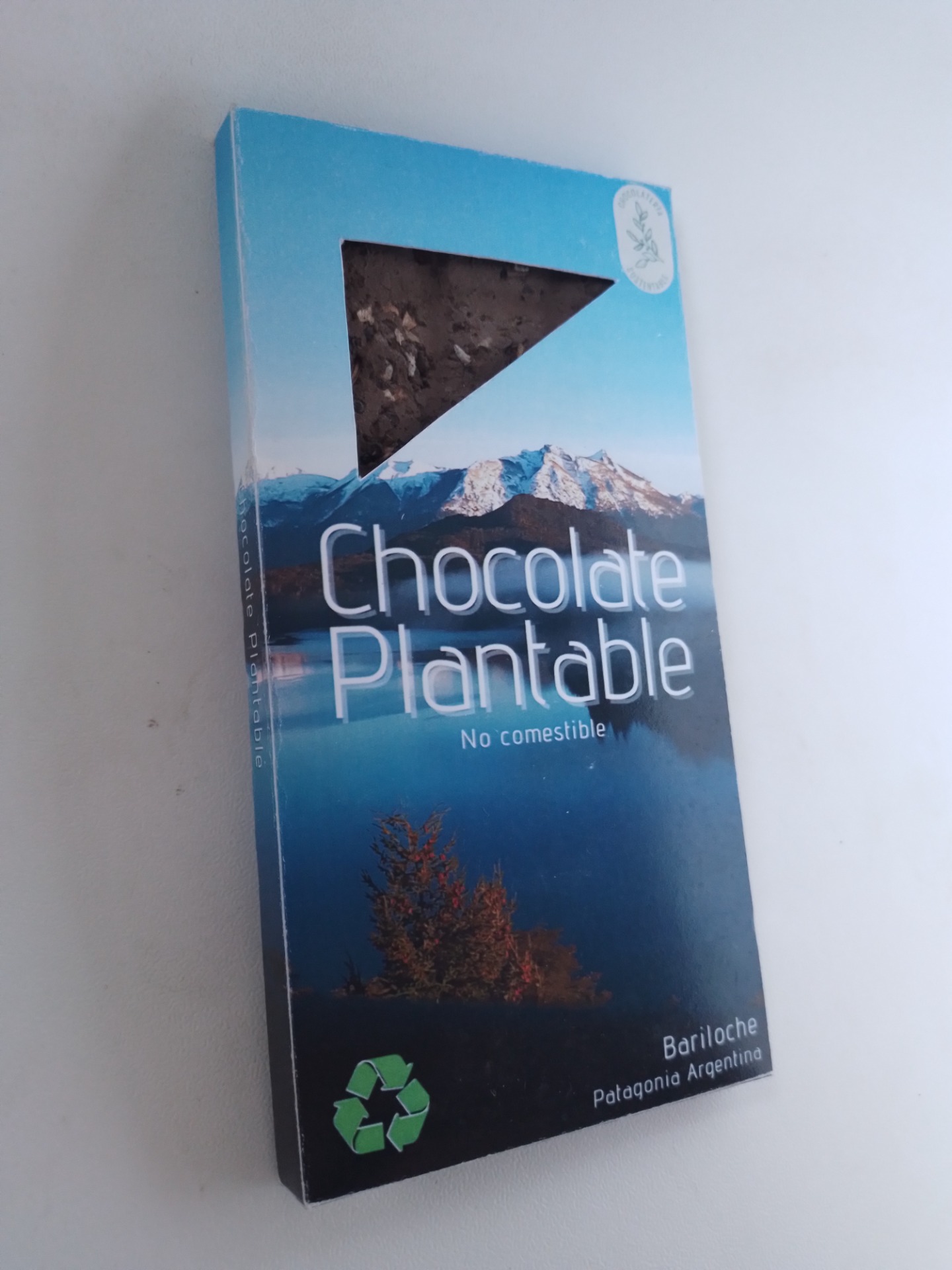 Barra hecha a mano NO COMESTIBLE con características físicas iguales a un choco real pero esta elaborada a basa de arcilla tierra y semillas, entonces, ¿En que consiste? En romper pedacitos y en vez de comerlos, los plantas.